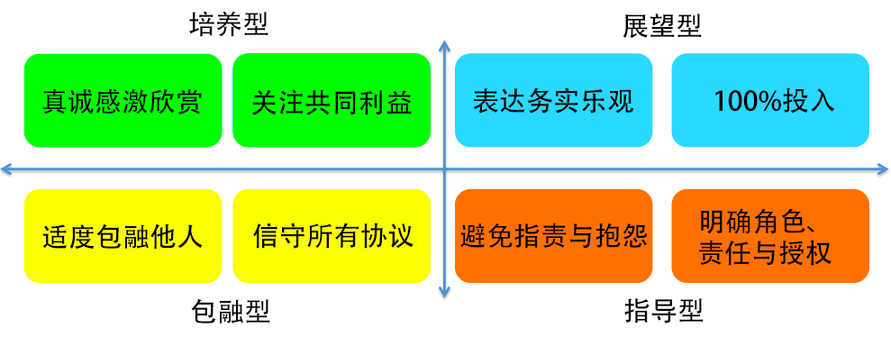 每一个维度的卓越,体现在两个典型行为上,关注四个维度发展的最好方式就是所有八项行为上持续改进:
